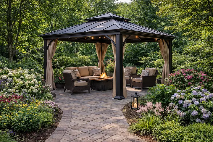 We design and install pergolas, gazebos, saunas, sheds, and durable hardscape solutions that transform your backyard into a beautiful outdoor living space.